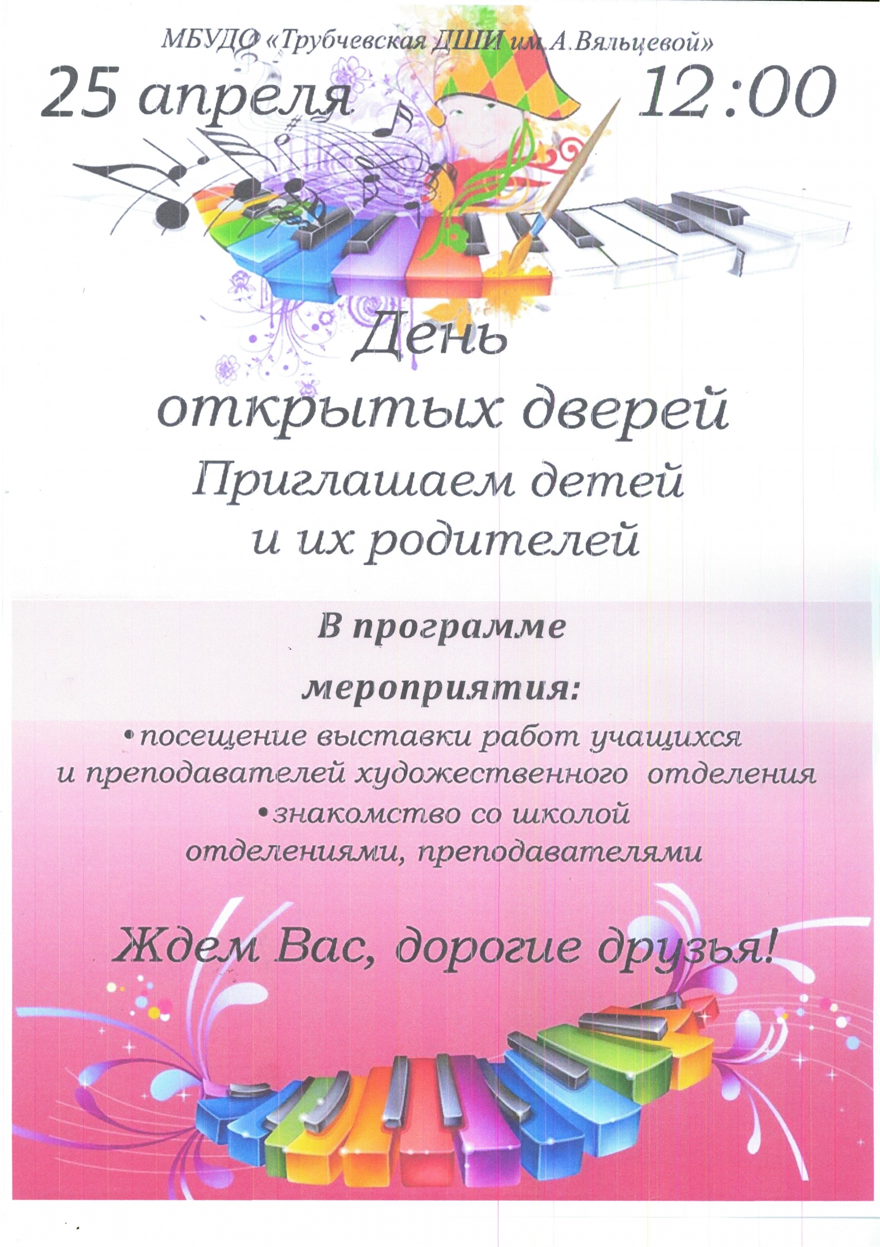 Зрители — студенты Трубчевского профессионально-педагогического колледжа и учащиеся нашей школы узнали интересные факты о возникновении фортепиано и этапах его развития: от клавикорда до рояля. Для восприятия этой информации были продемонстрированы музыкально-информационные видеоролики. Программа концерта включала произведения русских композиторов разных эпох: С.Рахманинова, А.Хачатуряна, А. Иванова– Крамского, Е. Доги, Г.Соболева и др.